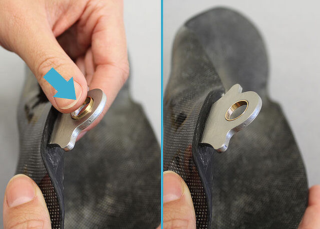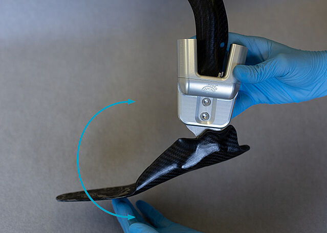 Hold the lower leg shell and try to move the foot piece in pronation-supination direction. If the system joint has lateral play, mount the next thicker sliding washer, repeat all steps from step 10 onwards and check again.