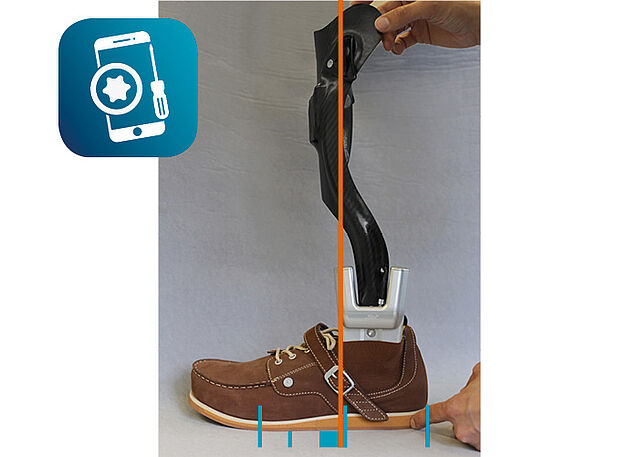 Realign the tibia inclination so that the plumb line falls through the centre of the ap measurement into the rear third of the front half of the supportive area. Save the basic position in the Expert app once.