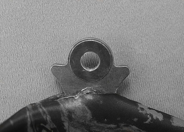 If the sliding bushing fell out in the previous steps, grease it slightly and place it into the bore at the system stirrup again.