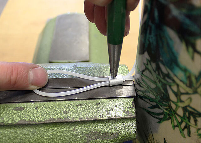 Stick the cable cover into the intended bore of the assembly/lamination dummy.