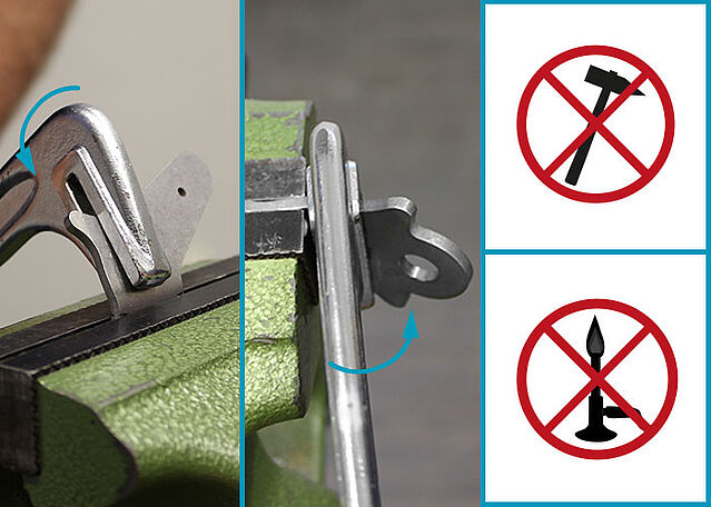 Berücksichtigen Sie beim Schränken den einzuhaltenden Biegeradius und verwenden Sie geeignete Werkzeuge (rundes Schränkeisen).
