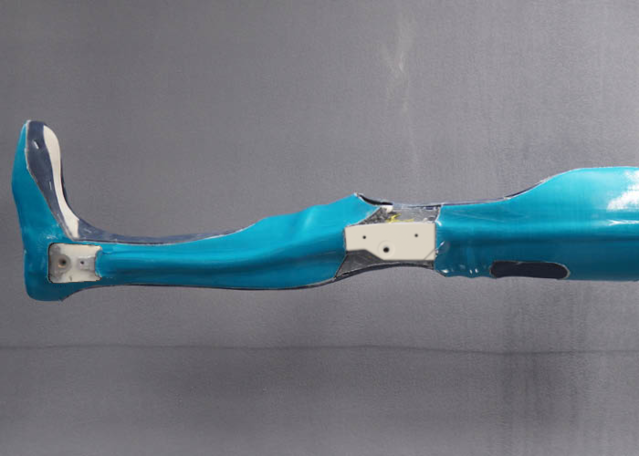 Hinweis: Angaben zum Biegeradius finden Sie in der Gebrauchsanweisung für qualifizierte Fachkräfte für Orthopädietechnik Systemschienen und Systemanker für Systemgelenke aus Carbon.Schritt 9/10