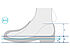 - Volumen unter der Ferse und im Vorfußbereich ausgleichen (blaue Schraffur)